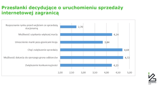Okazuje się, że dla sprzedawców internetowych zagranicą jednym z kluczowych kryteriów jest możliwość dotarcia do szerszego grona klientów, jak i chęć zwiększenia sprzedaży. Co wydaje się oczywiste. Natomiast ciekawe jest to, że bardzo mało sprzedawców ocenia wysoko rozpoznanie rynku przed wejściem ze sprzedażą stacjonarną.