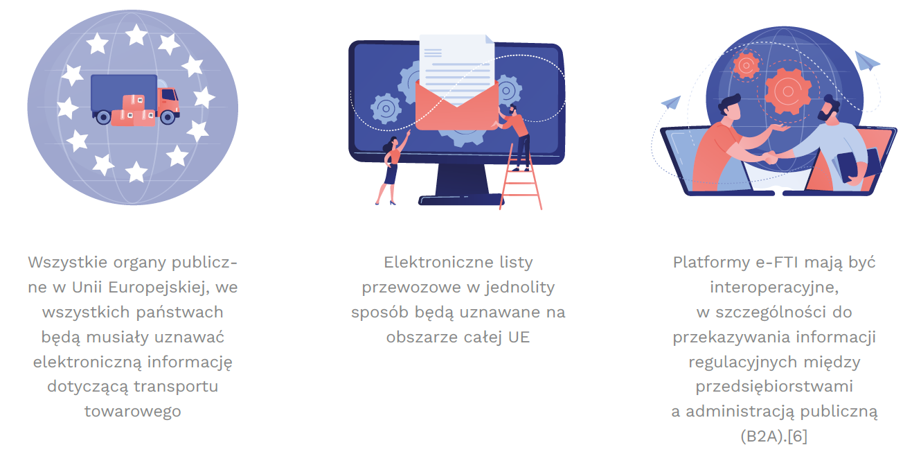 > Rozporządzenie e\-FTI to nie to samo co e\-CMR. E\-FTI reguluje przekazywanie elektronicznych informacji w transporcie towarowym na poziomie biznes i administracja publiczna na terenie Unii Europejskiej. Reguluje też elektroniczne przesyłanie i wymianę dokumentacji. List przewozowy jest podstawowym dokumentem w transporcie. Od tego będzie możliwe, aby był w formie elektronicznej. Egzekwowane rozporządzenia nastąpi na przełomie 2024/2025\. Głównym celem powołania forum, zrzeszającego duże i małe firmy, nadawców logistycznych oraz platformy digitalizujące dokumenty, była zmiana aktów prawnych, a także wymiana doświadczeń. Rozmawiamy o tym, co się dzieje w innych krajach UE.