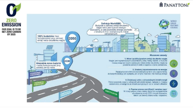 Panattoni, będący liderem na rynku magazynowym, buduje obiekty, sprzedaje magazyny poszczególnym klientom lub zarządza zachowanymi obiektami. Firma postawiła sobie za cel osiągnięcie zerowej emisyjności do 2050 roku. W branży budowlanej określa się dwa rodzaje emisyjności. Emisyjność wbudowana, do której wlicza się wszystkie emisje z tytułu wykorzystywanych materiałów do budowy. Bierze się pod uwagę emisyjność wszystkich dostawców, sam proces inwestycji, wszystkie sektory i firmy. Emisyjność operacyjna to emisja podczas życia budynku. Do 2050 roku wszystkie budynki muszą być zero emisyjne. Z kolei do 2030 roku nowo budowane budynki muszą być zero emisyjne.