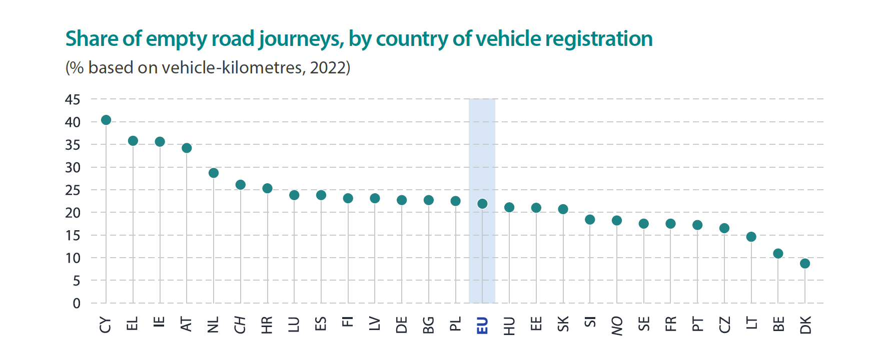 W 2022 roku 21,9% przewozów w Unii Europejskiej zostało zakwalifikowanych jako puste przebiegi. Polscy przewoźnicy w 2021 roku odnotowali 22,46% wozokilometrów pustych przebiegów, w łącznym zestawieniu przewozów krajowych i międzynarodowych. W 2022 roku ich liczba utrzymywała się na podobnym poziomie, bo 22,51%. Świadczy to cały czas o operatywności naszych przewoźników i szukaniu ładunków. Największą liczbą pustych przebiegów legitymowali się przewoźnicy z Cypru, Austrii, Irlandii i Grecji, z udziałem ponad 30%.