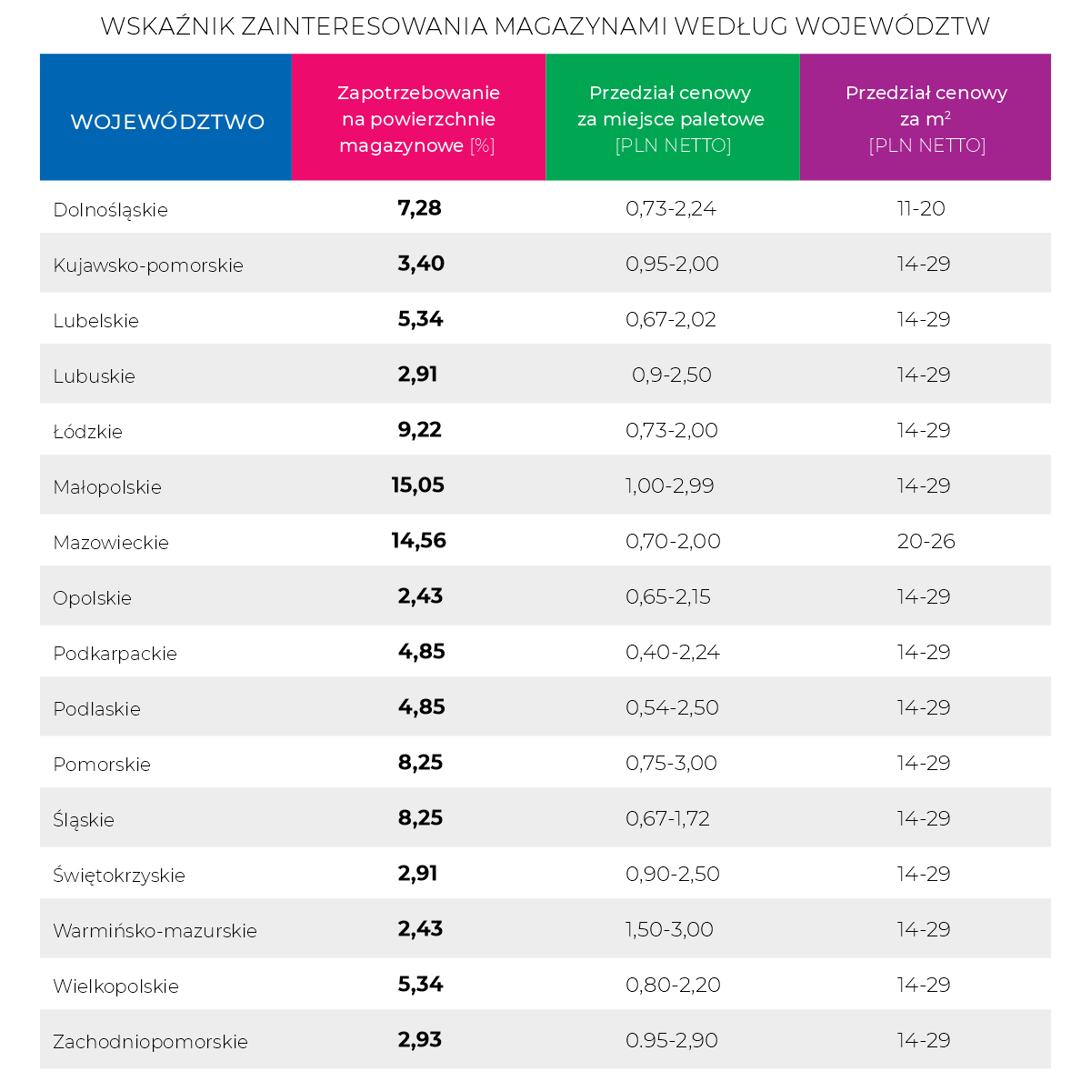 1. ciągłe zapotrzebowanie ze strony firm 3PL, przemysłu lekkiego, firm kurierskich i dystrybutorów detalicznych,