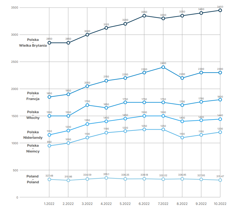 Stawki za transport, zarówno ten powyżej 16t, jak i ten do 3,5t, z miesiąca na miesiąc szły w górę. Wpływ na takie zjawisko miały przede wszystkim ceny paliw. To właśnie na wskazanych stawkach i wynagrodzeniach kierowców opierają się stawki dyktowane przez przewoźników. Końcem 2021 roku ceny ropy oscylowały na poziomie 6 zł za litr, natomiast z początkiem marca osiągnęły 8 zł za litr. Tak gwałtowny wzrost odbił się na cenach przewoźników i jednocześnie na popycie na transport. Czy to regres dużych przewozów dał możliwość rozwoju przewozów do 3,5t? Ekspert Trans.eu dkładnie wyjaśnił to w raporcie.