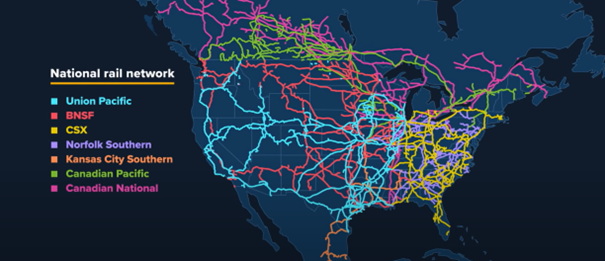 Po pierwsze – infrastruktura w USA jest uważana za najbardziej rozbudowaną i zaawansowaną na świecie. Aktualnie właścicielami całej infrastruktury kolejowej w Stanach Zjednoczonych jest siedem spółek, w pełni prywatnych: Union Pacific, BSNF, CSX, Norfolk Southern, Kansas City Southern oraz kanadyjskie Canadian Pacific i Canadian National. Co ciekawe, podejście do modernizacji i rozbudowy jest nastawione przede w wszystkim pod kątem przewozów towarowych, a Państwowe koleje pasażerskie (Amtrak) wykupują dostęp do infrastruktury od tychże spółek do przewozu pasażerów, co czyni fracht kolejowy bardziej znaczącym i priorytetowym względem transportu pasażerskiego za Oceanem. Gęsta siatka połączeń pozwala do dotarcie w każde miejsce w Ameryce Północnej.