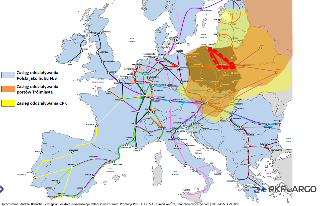 Inwestycja w CPK, wiąże się z budową nowych i modernizacją istniejących linii kolejowych. Alternatywne oraz szybkie szlaki pasażerskie, zwolnią sloty na dotychczasowych, zakorkowanych liniach. Ma to niebagatelne znaczenie dla poprawy ich przepustowości i zwiększenia prędkości dla przewoźników towarowych. Już dzisiaj narzekają oni, że muszą ustępować miejsca składom pasażerskim. Infrastrukturę można przyrównać do krwioobiegu huba, a jej udrożnienie zwiększy konkurencyjność biznesu terminali intermodalnych, takich jak Małaszewicze.