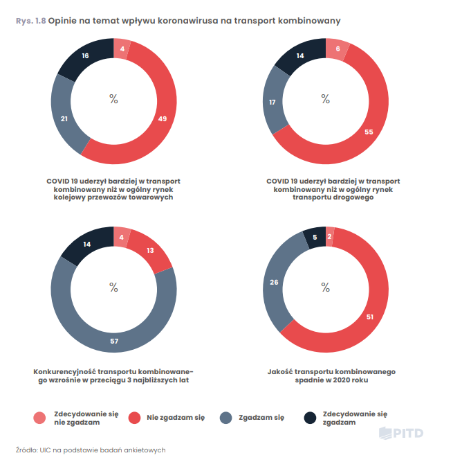Prezes Urzędu Transportu Kolejowego dr inż. Ignacy Góra, w raporcie ,,Transport intermodalny. Automatyzacja, technologia, infrastruktura i tabor” wyjaśnia, że przewoźnicy odnotowali spadki zarówno w przewozach pasażerskich, jak i towarowych, jednak w ujęciu rocznym pandemia nie spowolniła rozwoju transportu intermodalnego. Jego zdaniem spadki z początku 2020 roku są skutkiem utrudnień w połączeniach przez wschodnią granicę oraz wdrożenia zaostrzonych kontroli i działań w zakresie bezpieczeństwa. Sytuacja ustabilizowała się po ustaleniu procedur postępowania wobec pociągów transgranicznych.