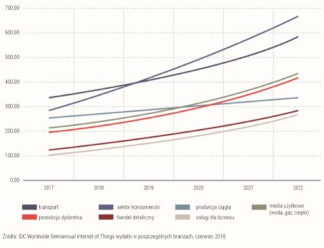 Wydatki na IoT w poszczególnych branżach (M USD)