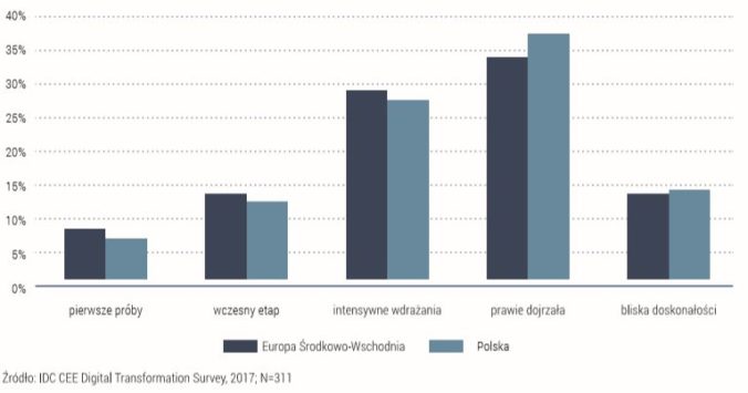 Na tle krajów z regionu jest u nas więcej firm, które deklarują, że są na „prawie dojrzałym” lub „bliskim doskonałości” poziomie adopcji rozwiązań cyfrowej transformacji.